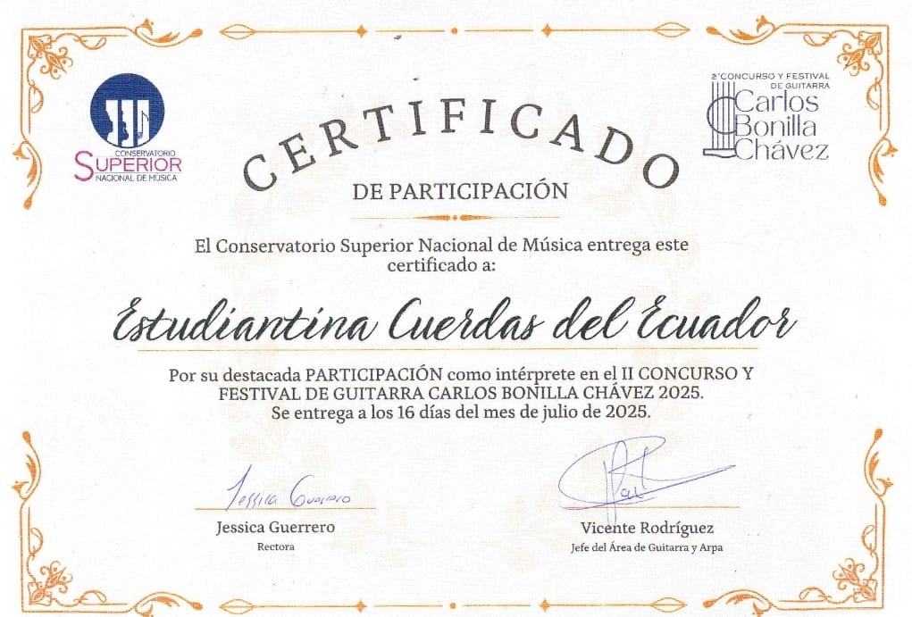 Festival de Guitarras «Carlos Bonilla Chávez», del Conservatorio Superior Nacional de Música, Teatro René Bonilla, Orquesta Sinfónica del Ecuador
